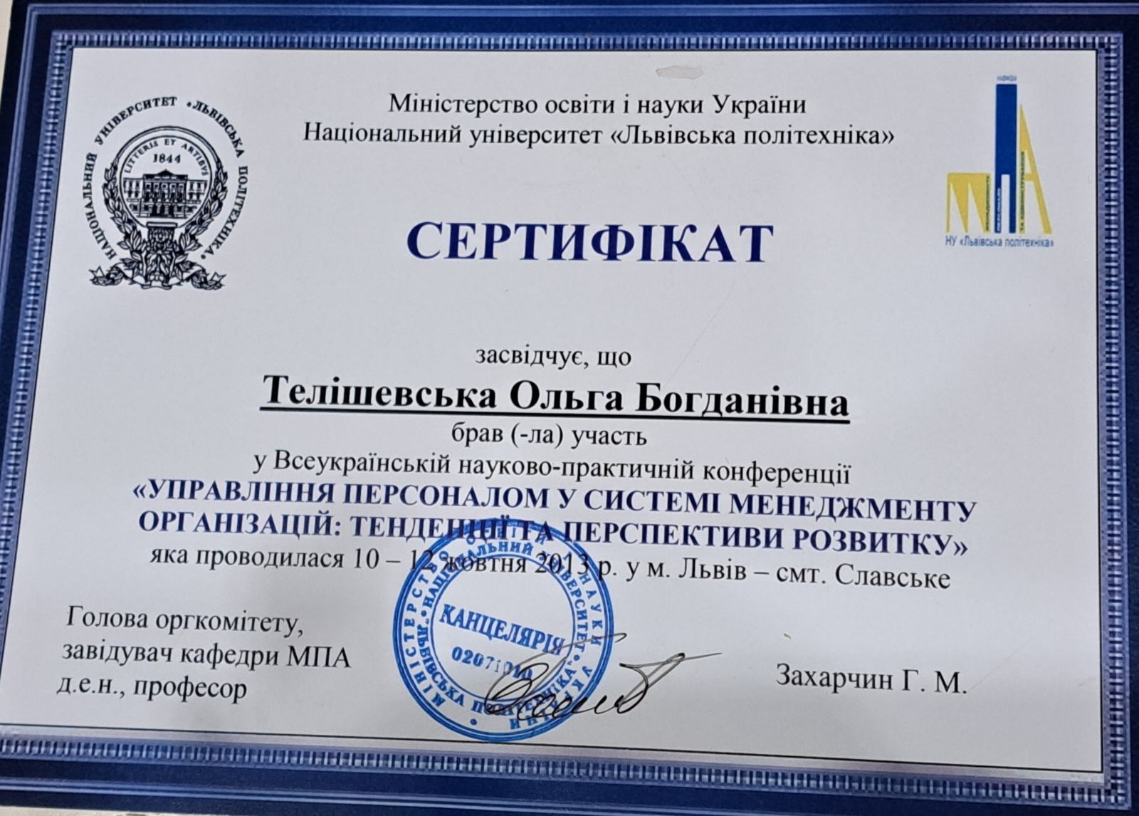 Формування лідерських якостей в менеджменті як проекція ефективного державного управління // НУ «Львівська Політехніка» // матеріали I всеукраїнської науково- практичної конференції 2013 р. (м.Львів-смт.Славське 10-12 жовтня 2013р.) с.165-168.