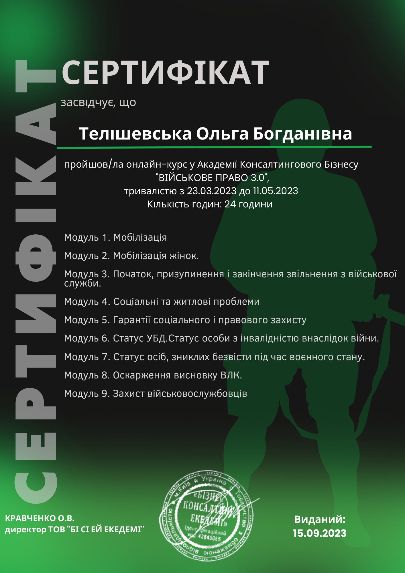 Наші реалії щоденно доказують актуальність слів класика, як-от: непримиримість з несправедливістю, відстоювання інтересів, захист прав та багато інших ситуацій, в які кожен з нас хоча б раз в житті потрапляв, тому всі ці фактори формують необхідність пошуку захисника. Знаючи і розуміючи це, довіру клієнта визначила, як першочерговий чинник у своїй роботі. Постійний розвиток та підвищення кваліфікації, посилюють відовідальність перед клієнтами та додають впевненість в обраній тактиці захисту. Тому з дотриманням загальнолюдських принципів та чинного законодавства, з досвідом в юриспруденції – допоможу вам у випадку порушення ваших законних прав та інтересів.