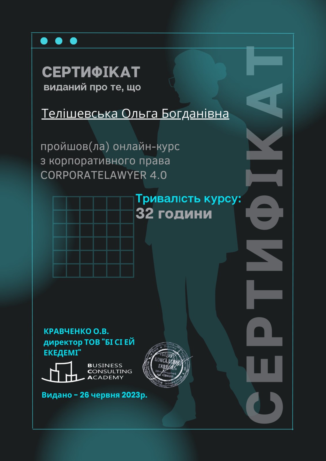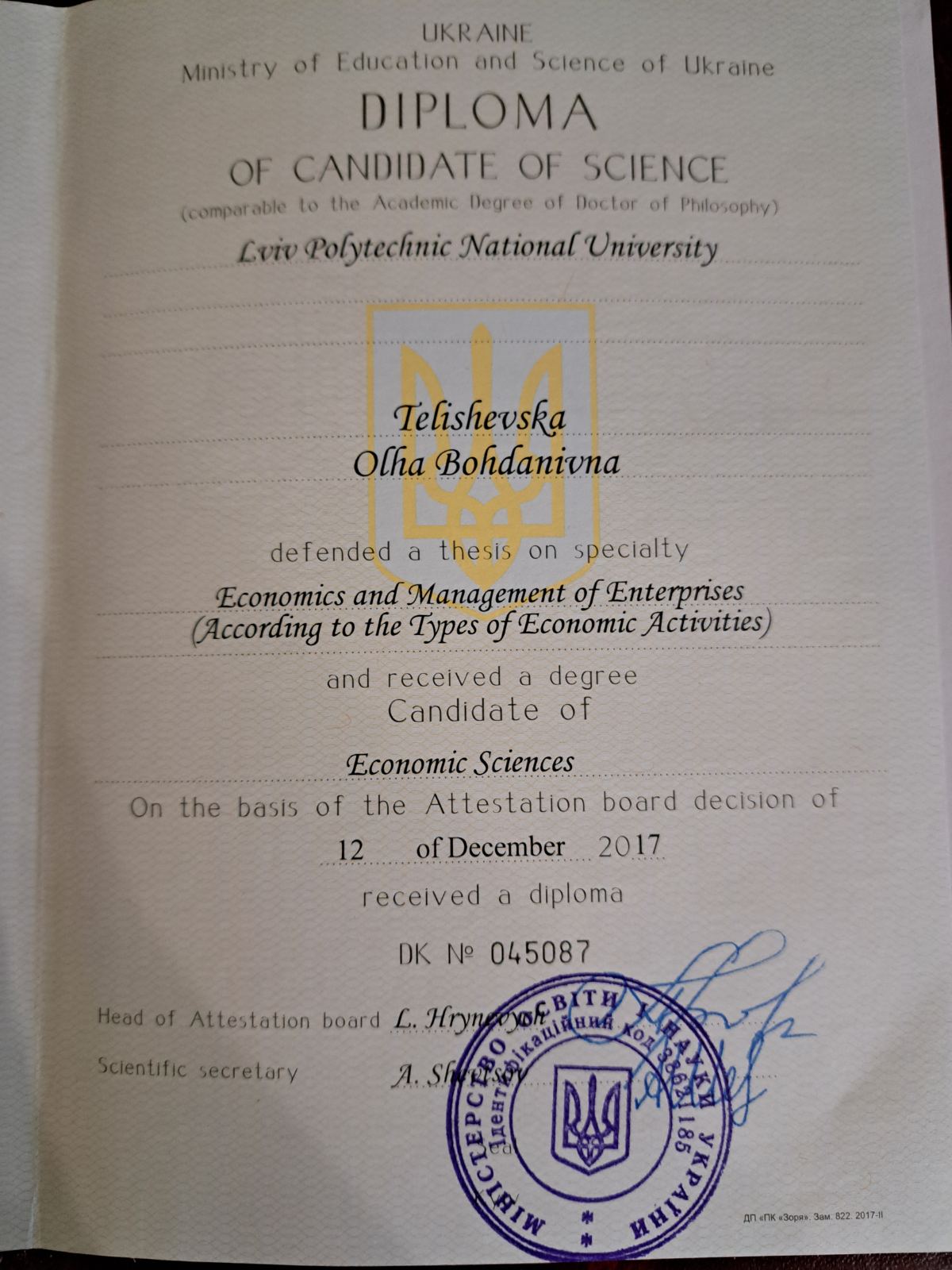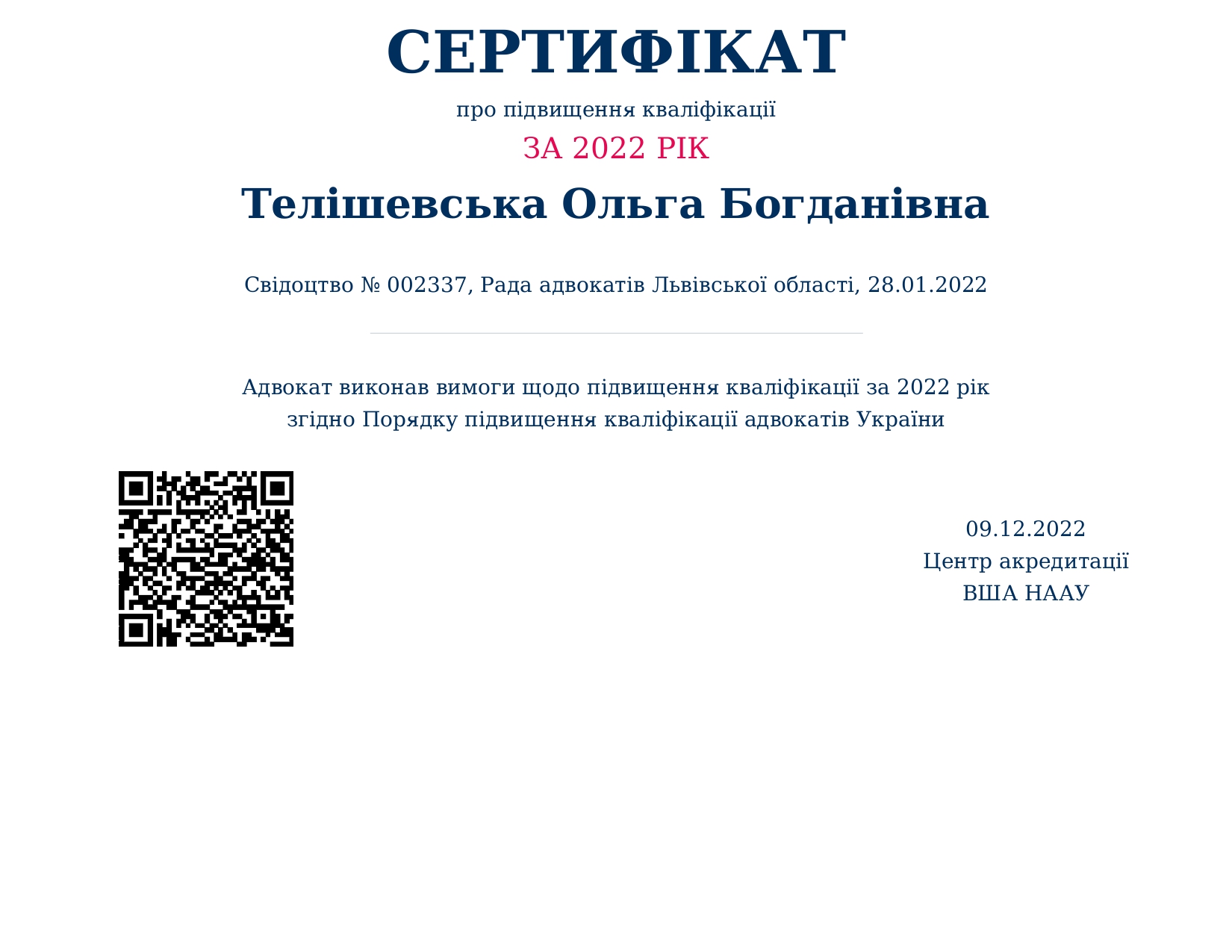 Адвокат, кандидат економічних наук, доктор філософії Ph.D.