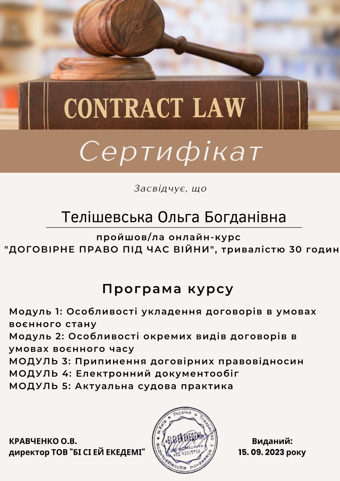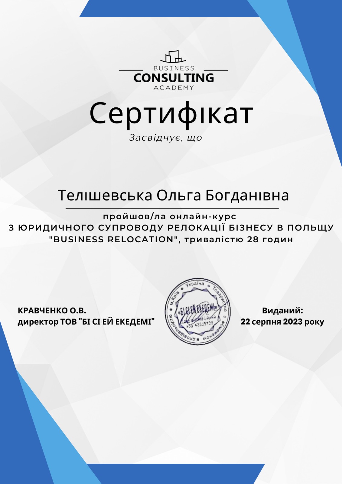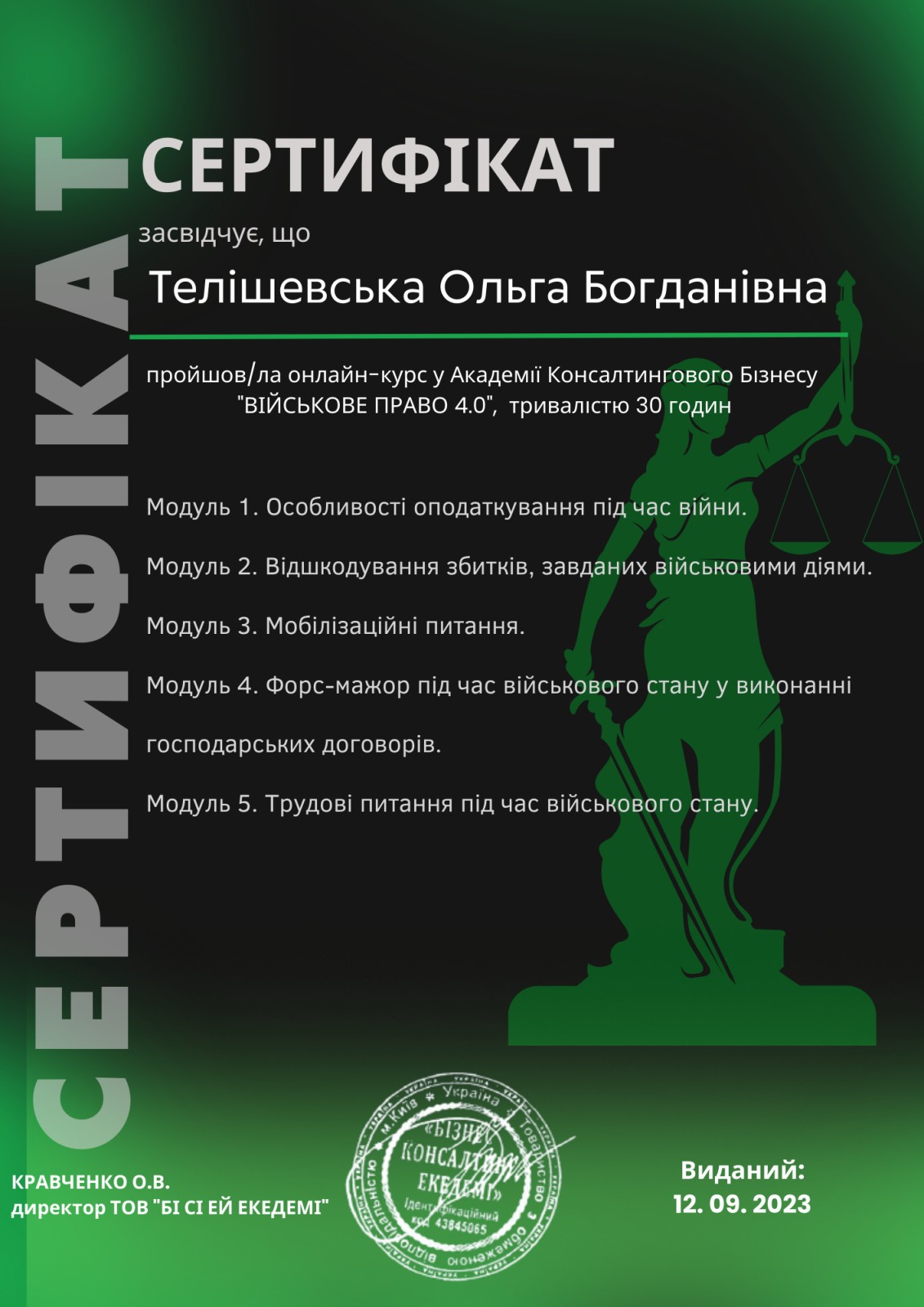 Адвокат, кандидат економічних наук, доктор філософії Ph.D.